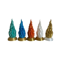 5 Flammes imprimées 3D · PLA · 19×8 cm chacune · Poids total ~650 g · Finition nacrée irisée